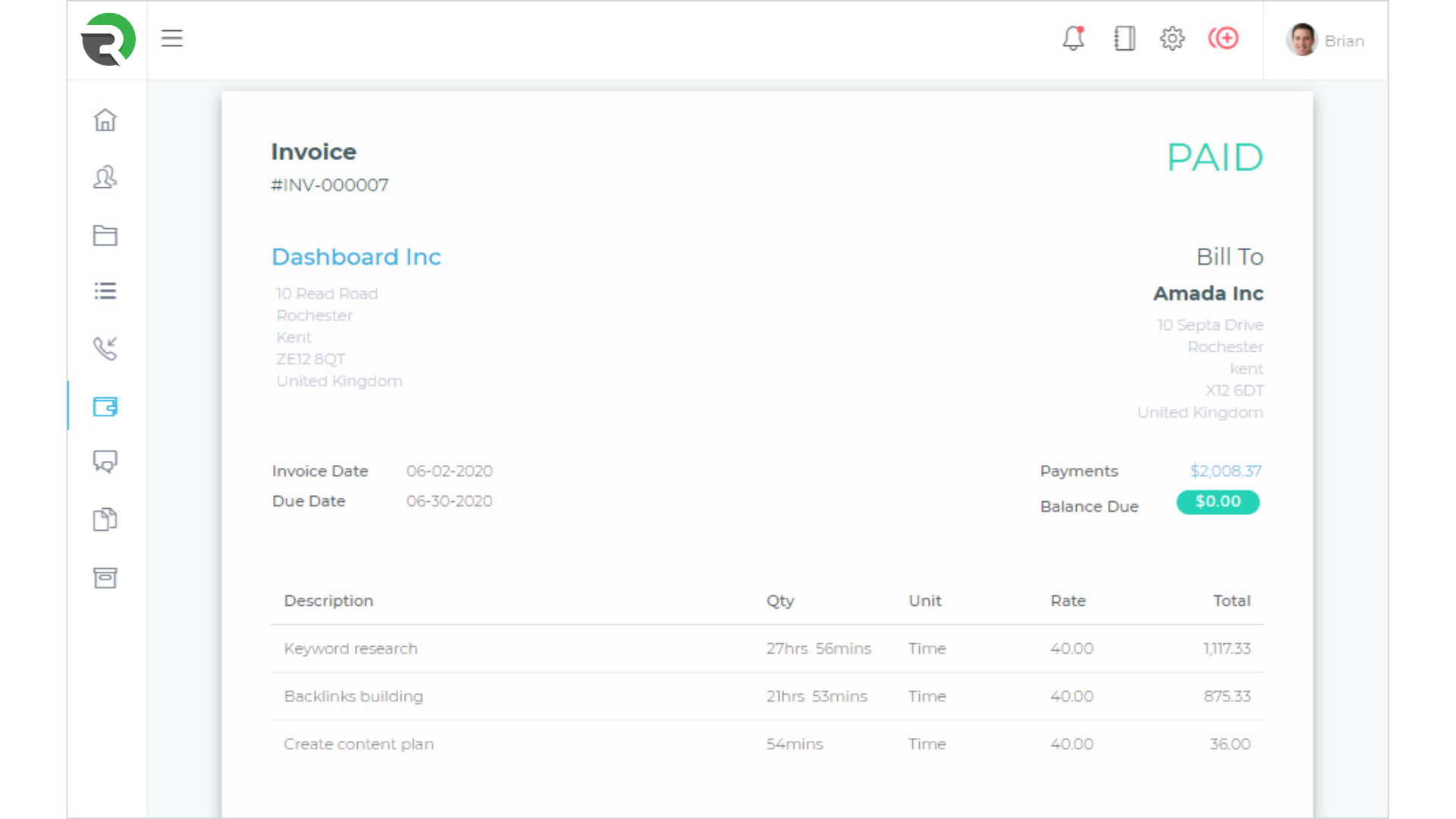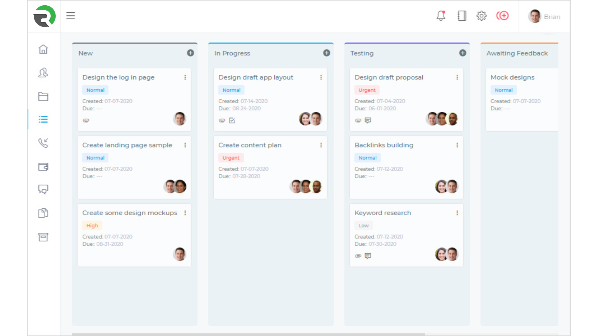 Our CRM gives you the right tools to manage, collaborate and complete your projects on time. Your clients will be happy and your team will be happy.- Easily see the progress of your project