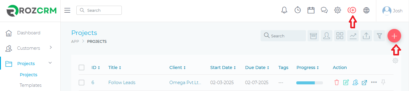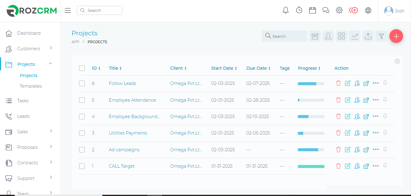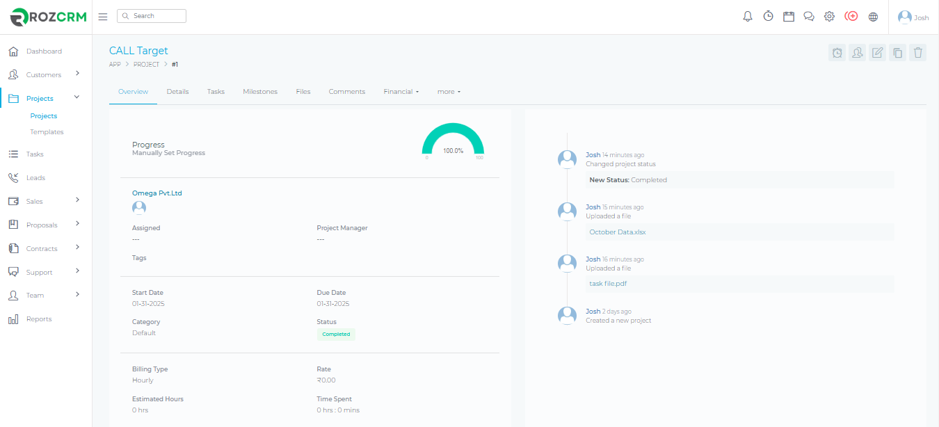 Roz CRM allows you to easily manage your projects. You are able to create projects, which you, your team, and your client, are all be able to share information and collaborate.