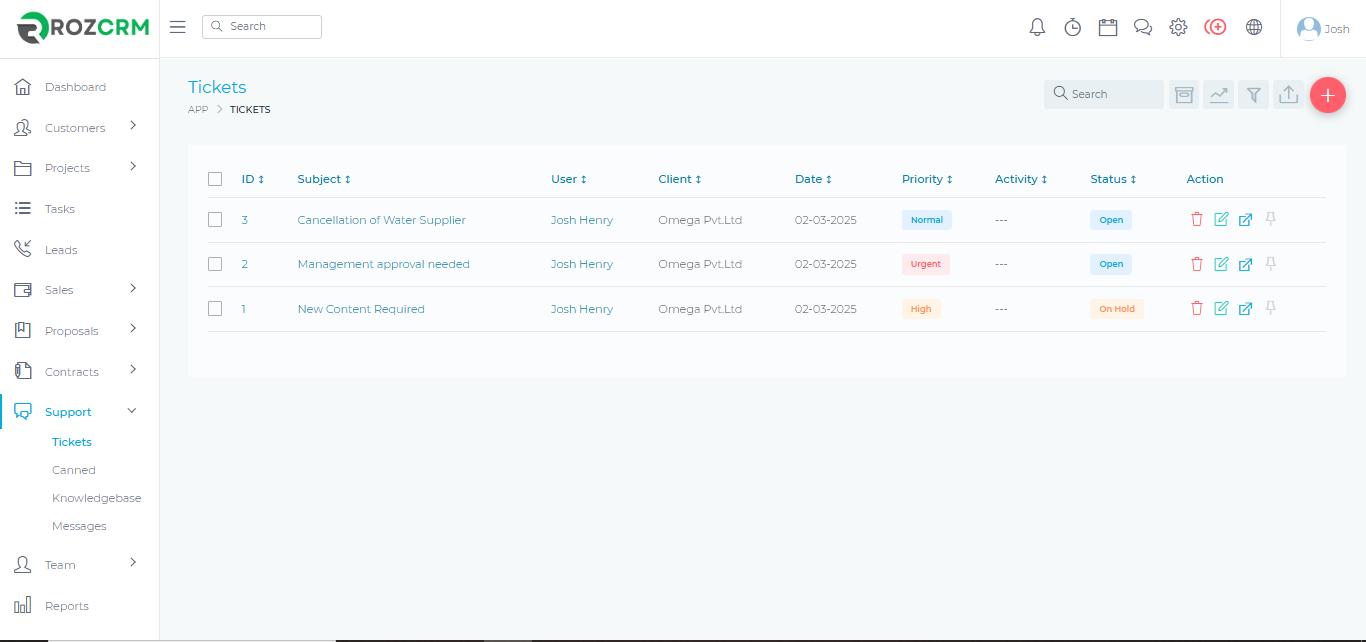 The support tickets feature enables you to boost your customer satisfaction by providing them with speedy assistance. Your customers are able to open new support tickets and your team can work together to resolve customer issues.
